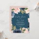 Esta invitación a la ducha de parejas azules con flores de color azul, es perfecta para una ducha de boda floral. El diseño es clásico y elegante, con un fondo azul verde azulado, y está decorado con un acuarela de color azul marino moderno y flores rosas rubias. Personaliza la parte posterior de la tarjeta con el nombre de la novia y el novio.