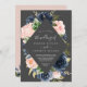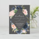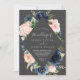 Este rubor de flores amarillas y grises en una sola invitación a la boda es perfecto para un boda floral. El diseño es clásico y elegante, con una acuarela moderna de color azul marino y flores rosas onduladas sobre un fondo gris oscuro. Guarde el papel incluyendo los detalles en la parte posterior de la invitación a la boda en lugar de en una tarjeta separada. Incluya también la información de RSVP si su invitado responderá electrónicamente (opcional).