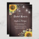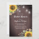 Estas invitaciones a la ducha de novias presentan un diseño rústico de girasol con flores, lámparas de aguijón de madera y tarro de albañil. Personalízalos con tu propio texto. Estas invitaciones nupciales son parte de una colección que incluye una amplia gama de artículos de papelería boda y otros artículos de ducha de novia a juego. Visite las páginas de colección de nuestra tienda para ver toda la gama de productos que puede personalizar para su día de boda.