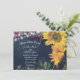 Esta rústica invitación Save Our Date boda presenta dos girasoles bonitos amarillos con bayas, luces de cuerda y vegetación sobre un fondo de pizarra negra. -