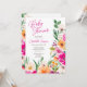 Elegante, luminoso y audaz ilustracion de verano moderno primavera con flores silvestres de gran tamaño y guión de broche jardín de campo invitación a la fiesta de la ducha con una moderna tipografía de caligrafía con flores brillantes de color rosa neón, naranja, verde y amarillo sobre un fondo blanco editable.