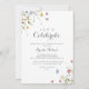 Esta colorida y delgada flor silvestre celebramos la invitación a la fiesta es perfecta para una fiesta de compromiso rústica, una fiesta de soltera, jubilación, graduación, boda tras fiesta o cualquier evento o fiesta. El diseño se caracteriza por una acuarela pintada a mano con bonitas flores rosadas, onduladas, azules, navales, amarillas, violetas y verdes.