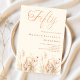 Una elegante invitación de cumpleaños número 50. Un fondo de color crema, beige, decorado con flores silvestres de color agua en tonos beige, rosa y verde polvoriento. Cincuenta está escrito con una gran escritura a mano con letras.
