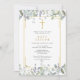 Sage bonito y hojas de lila caen en cascada sobre un elegante marco dorado que encierra los detalles de su bautizo o bautismo en texto clásico y elegante. Diseñado por Thisisnotme©