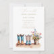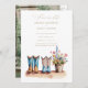 Anuncie su gran día con esta boda de Moda Rustica de Flores Silvestres Salve la fecha. Con un encantador ilustracion acuarela de botas de vaquero en cuero denim y marrón, acompañado de un cubo rústico lleno de flores silvestres, este diseño combina con gusto el encanto del campo con la elegancia romántica. Una plantilla de fotografía de personalizable aporta un toque personal, mientras que la tipografía elegante realza la cálida estética de moda rústica. Perfecto para granero, rancho o bodas al aire libre, este refugio de la fecha marca el tono para una celebración llena de amor, naturaleza y un toque de encanto occidental. Personalice fácilmente con los detalles de su boda.