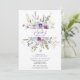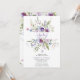 Esta invitación de baby shower de moda presenta flores silvestres en acuarela en tonos azul claro y violeta, rosa pálido, hojas verdes y ramas.