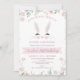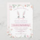 Flores silvestres rosadas suntuosas algunas conejitas de Chicas de la Confitura del Primer Cumpleaños enfrentan la invitación temática del primer cumpleaños con adorables arreglos florales de flores silvestres, banner rosa y una cara de conejito. Esta invitación a los primeros cumpleaños de algunos conejitos también incluye algunos puntos falsos de purpurina de oro y es totalmente editable haciendo que el diseño sea adecuado para cualquier edad.