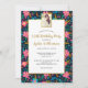 Celebra una persona especial con esta hermosa invitación a la fiesta que incluye una foto y tus detalles del evento rodeados por una falsa frontera dorada impresa - todo contra un fondo floral rosa, azul, verde, flor negra y florida. Perfecto para un cumpleaños, una ducha de bebé o novia, una jubilación, aniversario y mucho más. Una calidad maravillosa y tan fácil de personalizar.