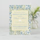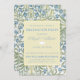 NewParkLane - Invitación elegante para fiesta de graduación, con un patrón floral vintage de pequeñas campanillas azules, flores blancas más grandes y hojas de acanto suaves y verdes, del artista del siglo XIX William Morris (1834-1896), con un marco amarillo suave para tus textos, todo en tipografía de letra elegante. Diseño lindo para una celebración de graduación primaveral.