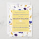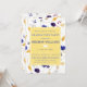 Nueva calle del parque - Tarjeta de invitación de graduación elegante, con un patrón de flores silvestres azul índigo / aciano y amarillo, con un marco amarillo para textos, todo en tipografía de letra cursiva elegante. Diseño lindo para una celebración de graduación en primavera.