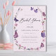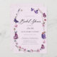 Una elegante invitación a la ducha de flores de boho floral con flores silvestres (cosmos y otras flores silvestres y hierbas comunes) en acuarela, mariposas púrpura y rosa con rociadas de oro (¡efectos digitales, no Relieve metalizado ni purpurina reales!) y caligrafía moderna, con una flor silvestre rosa en la parte posterior. Elegante y moda, es la invitación perfecta para un almuerzo nupcial en el jardín trasero, un brunch o un fiesta, o para cualquier novia que ame las flores silvestres, las mariposas y los rústicos diseños de campo con un toque romántico de boho.