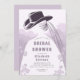 Celebre la futura novia con esta invitación a la ducha de flores salvajes del oeste de Prairie, que incluye una elegante silueta de vaquera en un gorra de vaquero con flores silvestres en la pradera abierta, con un esquema de color lila púrpura lavanda. Esta rústica invitación occidental combina el encanto rústico con un toque de elegancia sur, lo que lo hace perfecto para una ducha de novias con temática de cowgirl, celebración de graneros, reunión de ranchos o evento de moda de campo. Ya sea que esté hospedando un brunch de estilo occidental, un fiesta de té de una casa de campo o una ducha de novias al aire libre, este diseño inspirado en las praderas establece el tono perfecto para una celebración cálida y sentida.