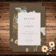 Anuncie a su boda con un toque de elegancia rústica. Nuestra cautivadora invitación a la boda incluye un arreglo vibrante de flores silvestres y helechos, meticulosamente dibujados a mano y reminiscente de tesoros botánicos apretados. Colores ricos como el bronceado, el amarillo, la crema, el azul y el verde sabio destacan muy bien en un marco de fondo marrón chocolate rico. Los detalles de su boda se muestran en un cuadro de texto crema nítida, lo que garantiza claridad y elegancia. Este cautivador diseño captura la esencia de un prado de flores silvestres, ofreciendo una manera única y memorable de celebrar tu historia de amor. Creado por Simply Farmhouse Press.