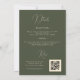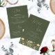 Sorprenda a sus amigos y familiares con estas invitaciones de boda modernas y elegantes, con fondo verde oscuro, flores silvestres, texto de caligrafía delicada, detalles personalizados y código QR. Agregue fácilmente su propia información y código QR haciendo clic en la opción "personalizar".