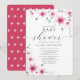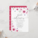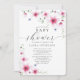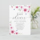Un caprichoso y mágico ilustracion acuático de flores de primavera y verano rosa fucsia y blanco, con follaje de cuentos decora esta invitación personalizada a la ducha de bebé chica.