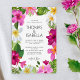 Esta hermosa invitación a la boda presenta un diseño sofisticado con un fondo blanco que hace que las flores tropicales y las hojas de palma se vuelvan pop. Puede añadir fácilmente sus propios detalles a la invitación. Invite a sus invitados a celebrar su historia de amor con estilo con esta elegante invitación a una boda tropical.