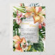 Invite a su boda con esta invitación a bodas tropicales de personalizable. Cuenta con una garganta acuática de hibiscos, plumeria, hojas de palma y otras plantas tropicales. Personalice esta invitación a la boda acuarela añadiendo sus propios detalles. Esta invitación a bodas botánicas de verano es perfecta para bodas de destino y bodas de verano.