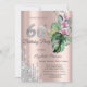 Invitación Flores Tropicales Brillo Gotitas Rosa Dorado 60