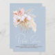 Pampas pasto, anthurios de rubor, orquídeas rosadas y rosas elegantes y modernos boho polvorientas invitaciones a la ducha nupcial azul