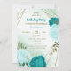 Hermosa invitación para fiestas de cumpleaños con flores turquesa y azul claro y hojas verdes Los detalles del purpurina de oro son simulados. PARA OBTENER MÁS PRODUCTOS COINCIDENTES, haga clic en la colección de arriba o póngase en contacto conmigo