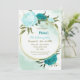Hermosa invitación para fiestas de cumpleaños con flores turquesa y azul claro y hojas verdes Los detalles del purpurina de oro son simulados. Es ideal tanto para las novias como para las duchas. PARA OBTENER MÁS PRODUCTOS COINCIDENTES, haga clic en la colección de arriba o póngase en contacto conmigo