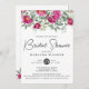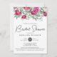 Invitación Flores verdes rosas, ducha de novia