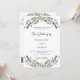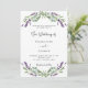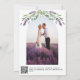 Un fondo blanco decorado con flores de lavanda y vegetación eucaliptica. Personalice y sus nombres y detalles. Atrás: Personalice y agregue su foto al marco de arco. Agregue la URL de su sitio web boda al código QR para obtener más detalles y/o RSVP.