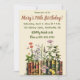 Esta hermosa invitación presenta una fila de libros y flores con los detalles encima. En la parte posterior hay un campo para información adicional. El texto en ambos lados es editable, así que adelante, cambie la información así como el tamaño de la fuente, el color y el estilo. El color de fondo en la parte posterior también se puede cambiar. Esta invitación se puede utilizar para eventos de clubes de lectura, eventos de educadores, cumpleaños, jubilaciones, graduaciones, etc.