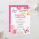 Estas invitaciones a la ducha de agua en el jardín cuentan con mariposas acuáticas y flores en tonos rosa, melocotón y naranja. Las palabras "Mariposas y canciones de cuna" están dispuestas en la tipografía de moda. Utilice los campos de plantilla para agregar su información personalizada. Solicite tarjetas impresas, invitaciones imprimibles o invitaciones digitales. Para más diseños de invitación a ducha de bebé personalizado y plantillas de invitación a DIY, visite www.zazzle.com/dotellabelle Arte y diseño de acuarela único de Victoria Grigaliunas de Do Tell A Belle.