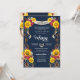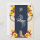 charro occidental hermoso tema rústico para quinceañera o celebración de cumpleaños. Este diseño presenta girasoles amarillos brillantes y ricas rosas rojas, con un fondo azul marino de personalizable y acentos rústicos occidentales. ¡personalizable total para cualquier tipo de evento!