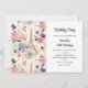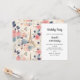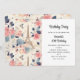 Invitación de cumpleaños con un bonito patrón de temática francesa. flores de bonito y una torre Eiffel y mariposas. Los colores son rosa, azul, melocotón y crema.