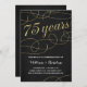 Esta elegante invitación para una fiesta de aniversario de bodas número 75 presenta florituras vintage elegantes, caligrafía que dice "75 años", falso foil dorado y un fondo negro chic.