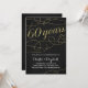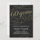 Esta elegante y sofisticada invitación para la fiesta de aniversario de bodas número 60 cuenta con florituras vintage elegantes, caligrafía que dice "60 años", lámina de oro y un fondo negro chic.