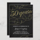 Esta elegante y sofisticada invitación para la fiesta de aniversario de bodas número 50 cuenta con florituras vintage elegantes, caligrafía que dice "50 años", hoja de oro falso y un fondo negro chic.