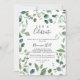 Este follaje de caligrafía celebramos la invitación a la fiesta es perfecto para una moderna fiesta de compromiso, una fiesta de soltera, jubilación, graduación, boda tras fiesta o cualquier evento o fiesta. El diseño presenta una acuarela de elegantes ramas y hojas de eucaliptos botánicos dibujadas a mano, dispuestas en hermosos ramos y motivos geométricos.