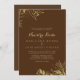 Esta invitación a la boda de nuestra boda nupcial con oro de caligrafía es perfecta para un boda rústico. El elegante diseño presenta hojas de oro y flores con purpurina para embellecer tu evento.