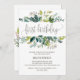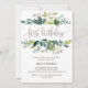 Esta carta de invitación para el primer cumpleaños es perfecta para una fiesta de cumpleaños rústica. El diseño neutro en género presenta un marco de hojas verdes y vegetales vegetales. El reverso incluye una corona de país que se puede personalizar con el nombre del niño de un año.
