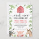 Animales de la Granja Verde de la Manta Roja Foliage Invitación al cumpleaños Animación de la granja de animales de la granja y invitación al cumpleaños de la coloración del follaje para una fiesta de cumpleaños. Este diseño cuenta con un bonito granero, un cerdo, una vaca y un burro, así como con una vegetación o follaje alrededor de los bordes de la invitación.
