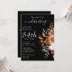 Este diseño presenta elegantes elementos florales en tonos dorados, burdeos, verdes y beige sobre el blanco y el negro para una invitación a la fiesta de cumpleaños. Explore la colección de esta página para encontrar elementos de coordinación en este diseño.