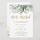 Estas elegantes invitaciones minimalistas para el brunch después de la boda presentan una tendencia de acuarela verde y hojas botánicas en un fondo blanco limpio con una moderna tipografía manuscrita en falso dorado que dice "estamos casados".