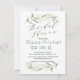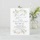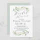 Hermosa Invitación a la ducha nupcial con follaje verde y dorado al estilo acuático. Texto "Ducha nupcial" escrito en estilo caligráfico.