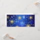 Invitación Fondo azul de NAVIDAD con copos de nieve dorados