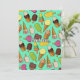 Iconos de helado. Patrón sin foco. Color de fondo personalizado. Texto personalizado.