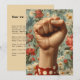 Una pintura realista de un puño apretado, levantado frente a un vibrante fondo floral. El contraste entre fuerza y belleza crea un impacto visual sorprendente.