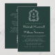 Invitación Forest Green Monogram Crest QR Code Wedding