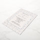 Sumérjase en un mundo de romanticismo eterno con esta invitación a la boda de moda, un guiño a la elegancia vintage tan elegante como sofisticada. El intrincado fondo de fibra, resplandeciente en plata, canaliza la gracia de antaño, sentando las bases para una celebración llena de encanto. Los detalles de la caligrafía le dan un toque de formalidad, capturando la esencia de las historias de amor clásicas con un toque moderno. Esta invitación promete una celebración que trasciende el tiempo, encarnando el encanto vintage que hace que tu día especial sea especialmente elegante y completamente romántico.