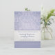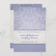 Hermosa damasca azul invitación formal a la boda. Edita esta invitación con tus palabras. Paneles blancos de China para tus palabras y adornados con una original garra botánica canguro con fondo de patrón damasco de corazones. Diseño de Sarah Trett.