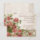 Esta invitación de recepción presenta un elegante grabado de elementos de hierro antiguos y rosas inglesas vintage en hermosos tonos rosados, así como dos mariposas blancas. Esta colección fue diseñada por Audrey Jeanne Roberts. El resultado es un conjunto de boda clásico, elegante y sin embargo atemporal para la novia contemporánea. En el reverso hay una imagen coordinada en dos esquinas y el monograma de la novia y el novio. TAMBIÉN TE PODRÍA GUSTAR: