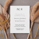 Celebrate your marriage with timeless elegance using this formal black and white wedding invitation. A refined initial monogram sits at the top of the design, setting a classic tone that flows through the clean typography and balanced layout. The minimalist styling and neutral palette create a sophisticated look that feels polished, graceful, and enduring.