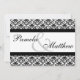 Invitación formal blanca y negra del damasco de la